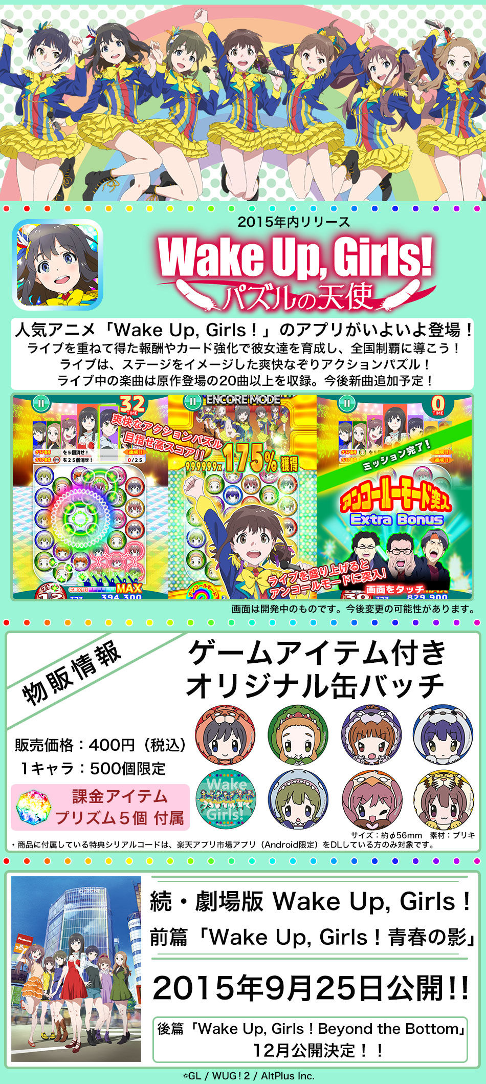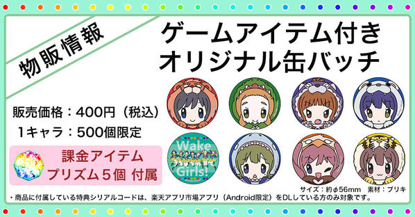 スマホアプリ続報「Wake Up, Girls! ~パズルの天使~」C88楽天アプリ市場ブースでオリジナル缶バッジも販売!